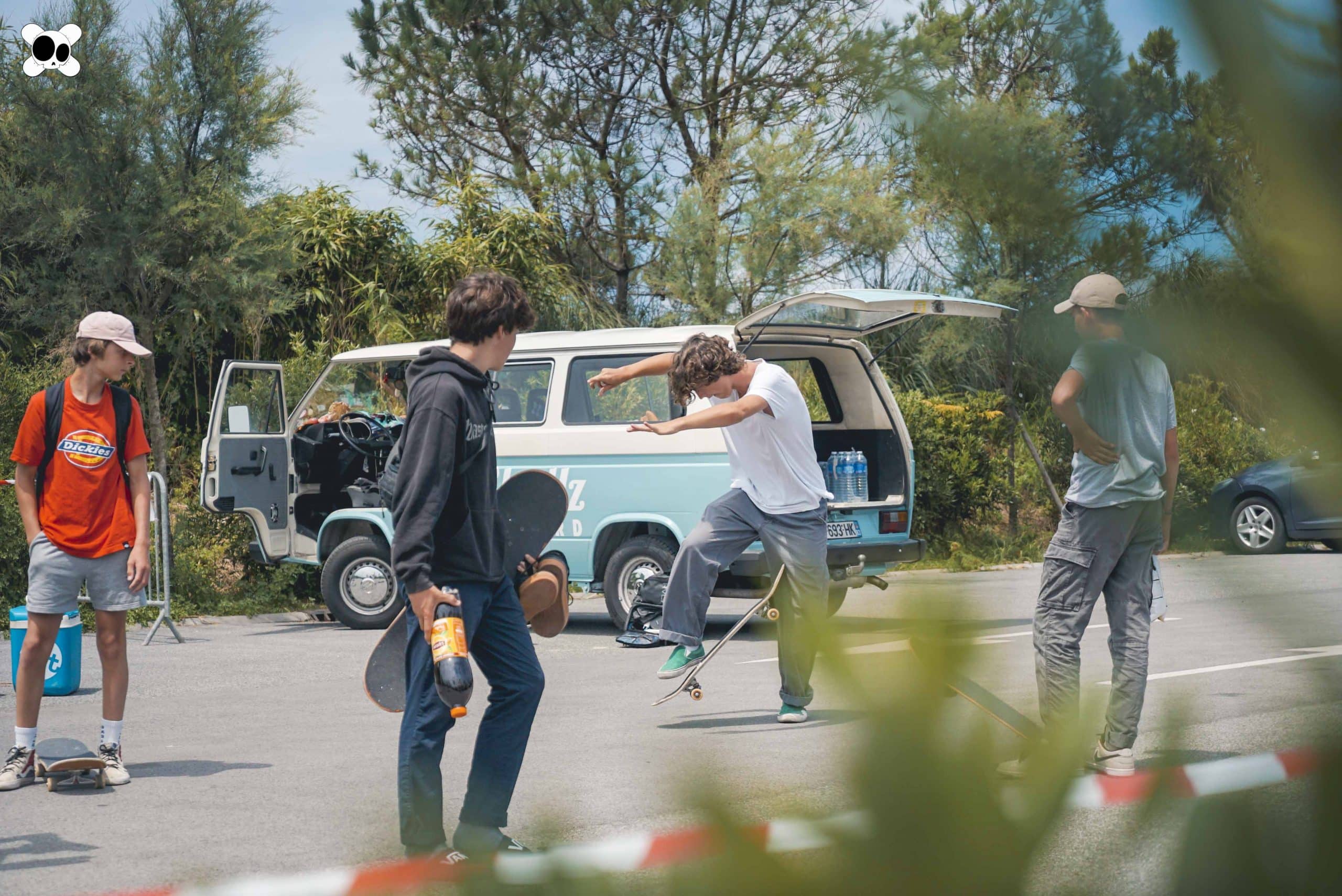 Les stats : 9 mecs, 1 minivan, 2000kms parcourus, la côte Basque, du soleil, du surf, du skate, l’océan, sans oublier les burgers, une fabrique de skateboard visitée, 7 boards gagnées, encore une belle aventure… On the road again !