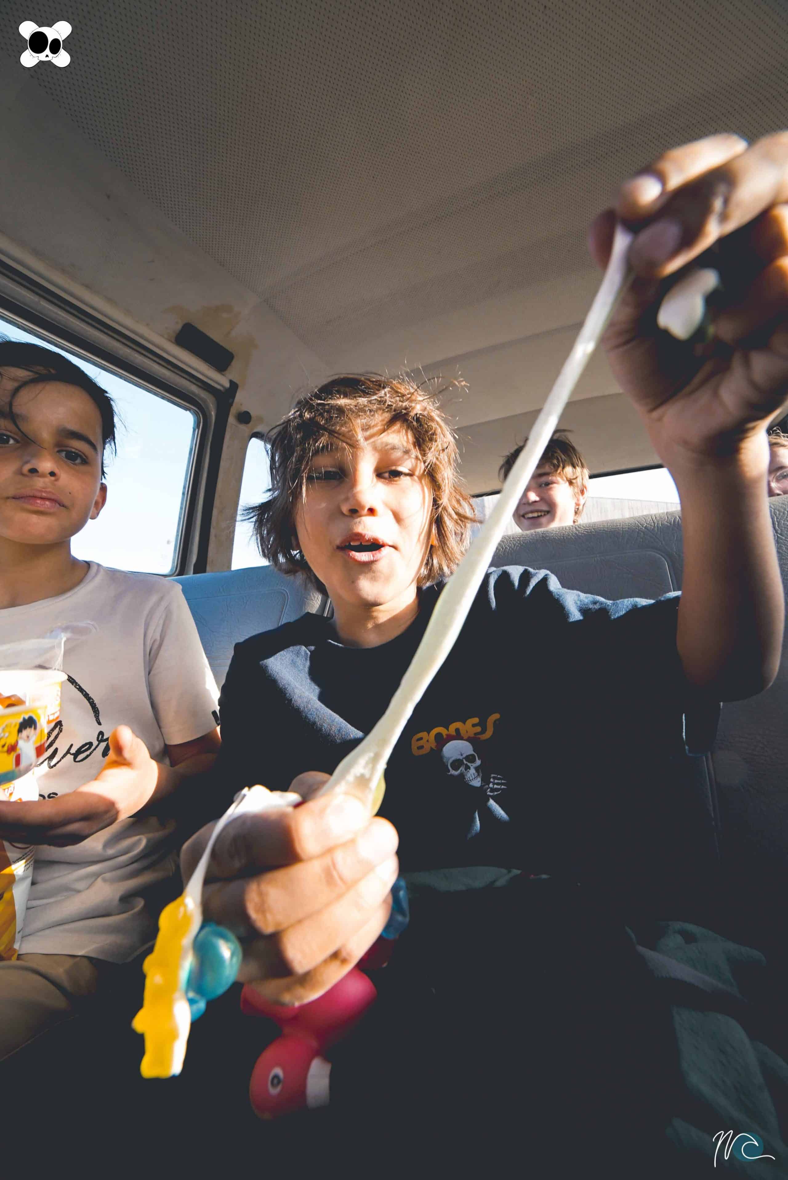 Partir en skate camp c’est : 1000kms de road trip en minivan, des amitiés créées, 9 paires de chaussures trouées, des filles et des garçons, 7 super skateparks visités, une météo radieuse, des nouveaux tricks appris, beaucoup de trottinettes évitées, des sourires éclatants, des gros airs shootés, des powerslides dans les flaques d’eau, des grips customisés, des gigas de photos et vidéos, des tonnes de fous rires et des tonnes de cadeaux ! Bref comme d’hab, à entendre les passagers ce fut encore une merveilleuse semaine de stage !